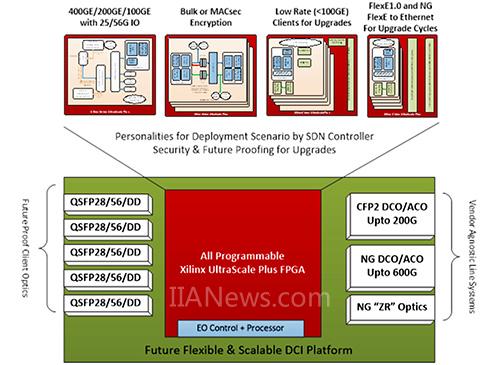 此外,可编程逻辑也可实现现场升级,在采用标准时,可支持全新协议修订版本的部署。可编程逻辑的这种可升级能力使 DCI 盒可以具备应用所需特性。该变更可通过 SDN 控制器来编排,因此,基于 FPGA 的 DCI 盒极具可塑性。在当今 SDN 控制的网络环境中,这样一种基于应用的 DCI 盒特性会形成极大优势。