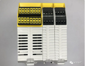 从外观上,我们可以看到, samos PRO COMPACT是一款紧凑型的安全控制器,其尺寸大小和普通的中小型PLC相仿,仅有45mm。不过这个控制器的外观主色采用了安全设备常用的黄色,而系统中一些不具备安全功能的普通模块,则是白色的,比如通讯模块和一些普通的DI、DO。所以从控制器颜色上,我们就首先能看出安全控制器和普通PLC的区别,当然除了黄色,有的品牌外观采用的是红色。