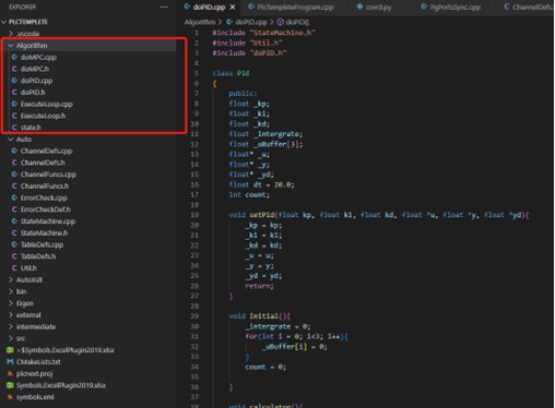 而在StateMachine中定义的函数,如上图中的doPID()函数,可以在Algorithm文件夹下实现,客户也可以方便的加入自己设计的算法函数。