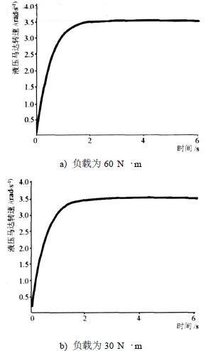 由图4 中曲线可以看出:液压马达在有较大差值的两种负载下转速达到稳定后速度基本相同。