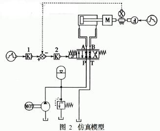 (1)元件选择及连接。该软件本身带有常用的液压元件,建模时,按要求将所需元件调进系统界面,根据液压系统原理连线。若所需元件并不包含在软件元件库中时可通过自己建立元件模型。本系统中所有元件均为软件元件库中的标准元件。
