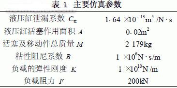 系统仿真在AMESim和Simulink 之间同时进行,实时交换仿真数据。在以上各模型建立好之后, 设定仿真参数模拟盾构推进工况, 主要参数设定值如表1所示。