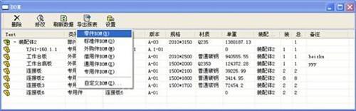 BOM的应用可以认为是采用PLDM进行研发管理的一个重要理由。传统BOM的输入需要专门的人员手工进行,容易出错,而且浪费时间,如遇到BOM变更的情况将更加复杂。而PLDM在保存图纸时自动提取图号、图名、材质等BOM属性,PLDM在创建BOM的时候会自动提取零部件所对应的物料信息(包括物料编码)并生成BOM清单,如下图所示: