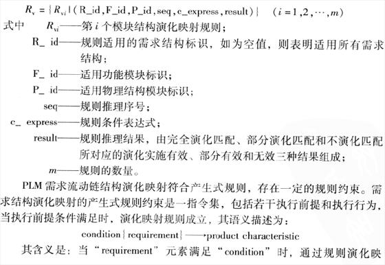 PLM需求流动链结构需求一功能一物理结构演化映射过程中,存在结构演化映射变量约束、结构演化映射规则约束和结构演化映射过程约束。