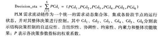 PLM需求流动链实施过程中的决策规则包括设计需求结构满足公理化规则;制造阶段满足需求质量优化规则;工艺路线满足最短路径规则;加工工具和设备满足高效运行规则;库存满足最优控制规则以及服务满足自由化规则等。
