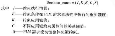 PLM需求流动链实施过程中的决策约束包括制造需求结构特征间的关系约束;机床和刀具本身性能的限制约束;被加工工件质M要求下的转速和进给率范围限制约束、最大切削力约束、最大切削功率约束以及工件表面粗糙度约束;工艺需求结构拓扑约束;需求零部件工艺路线主干匹配约束和修正约束以及固定采购成本下的最低采购量约TV等。