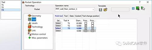 • 型腔操作支持多刀具功能,允许在单个操作中使用多把刀具